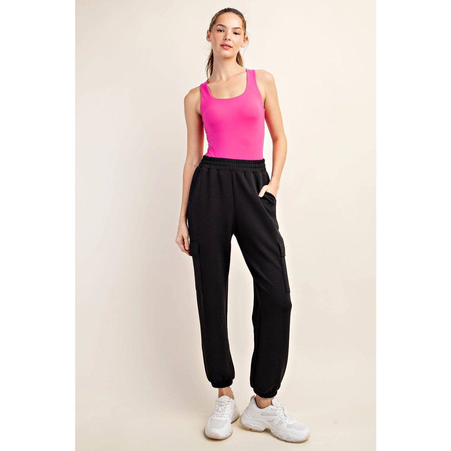 Features: - Modal polyester spandex fabric - Jogger pant - Relaxed fit - Cargo - Front and Side pockets - Adjustable elastic waist band