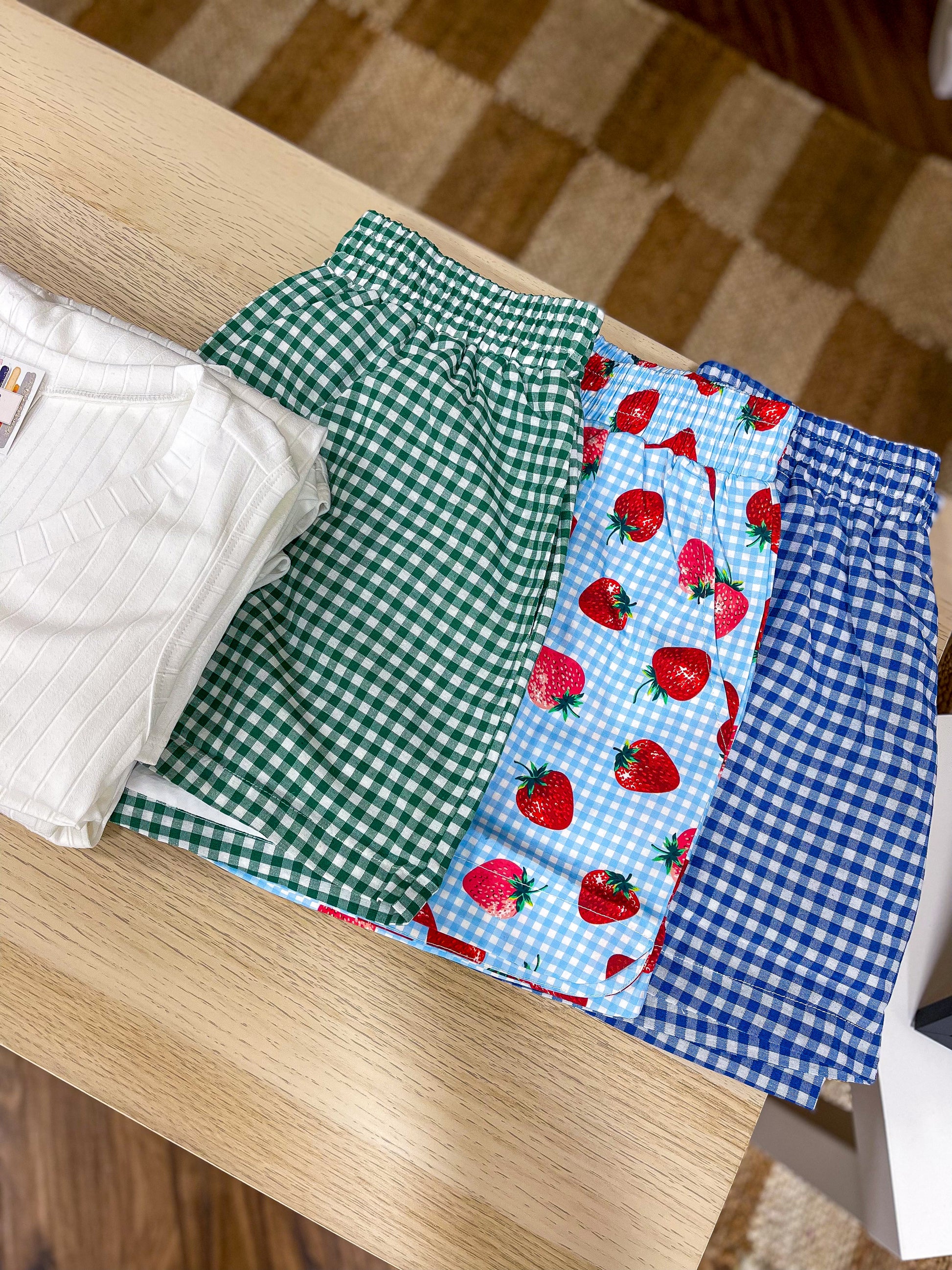 Elevate your loungewear with these Kelly Green Gingham Boxer Shorts, crafted from classic gingham check fabric for timeless style. Featuring a refined button detail and a comfortable elastic waistband, they offer a perfect blend of sophistication and ease. Ideal for relaxed days with a polished touch.