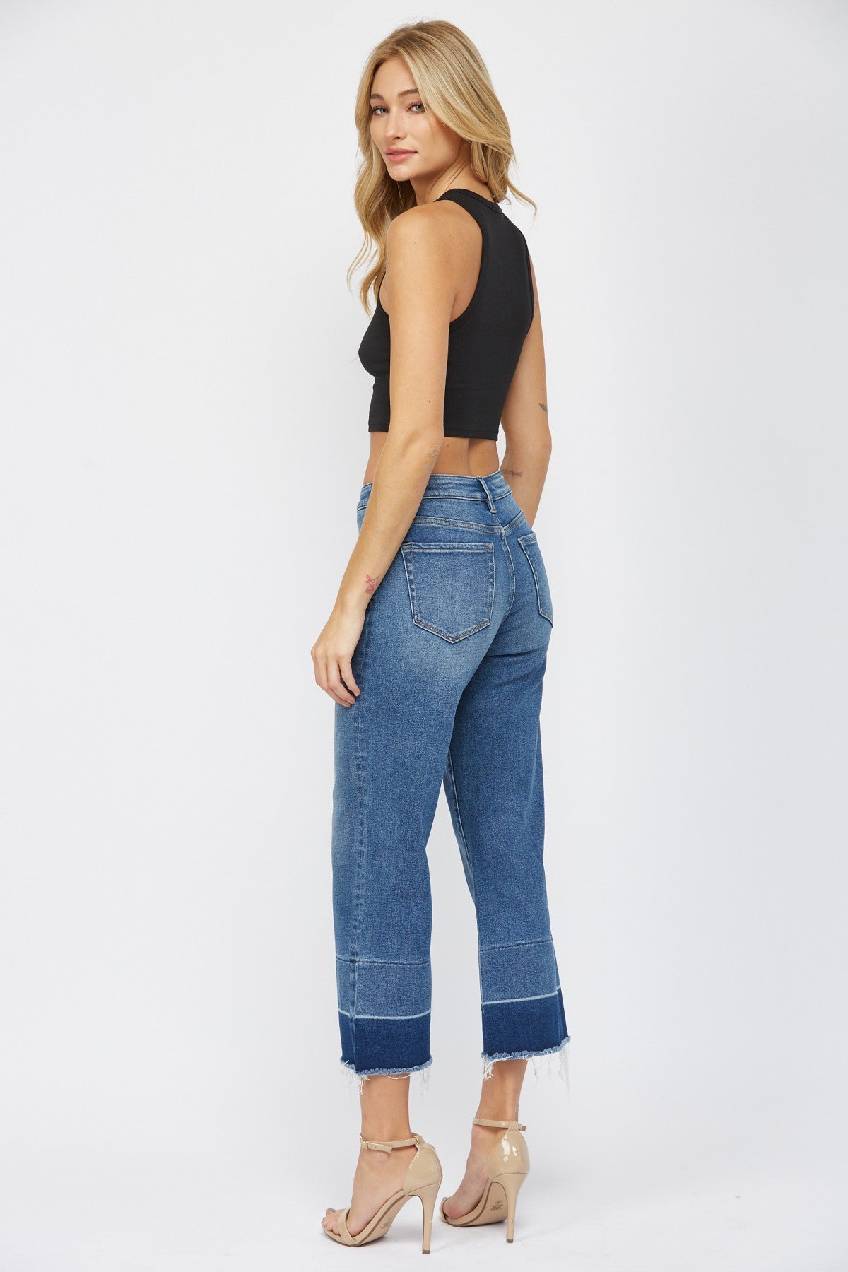 HIGH RISE STRETCH STRAIGHT CROP 98% COTTON, 2% SPAN FRONT RISE : 10" INSEAM : 26" LEG OPENING: 18 1/2"