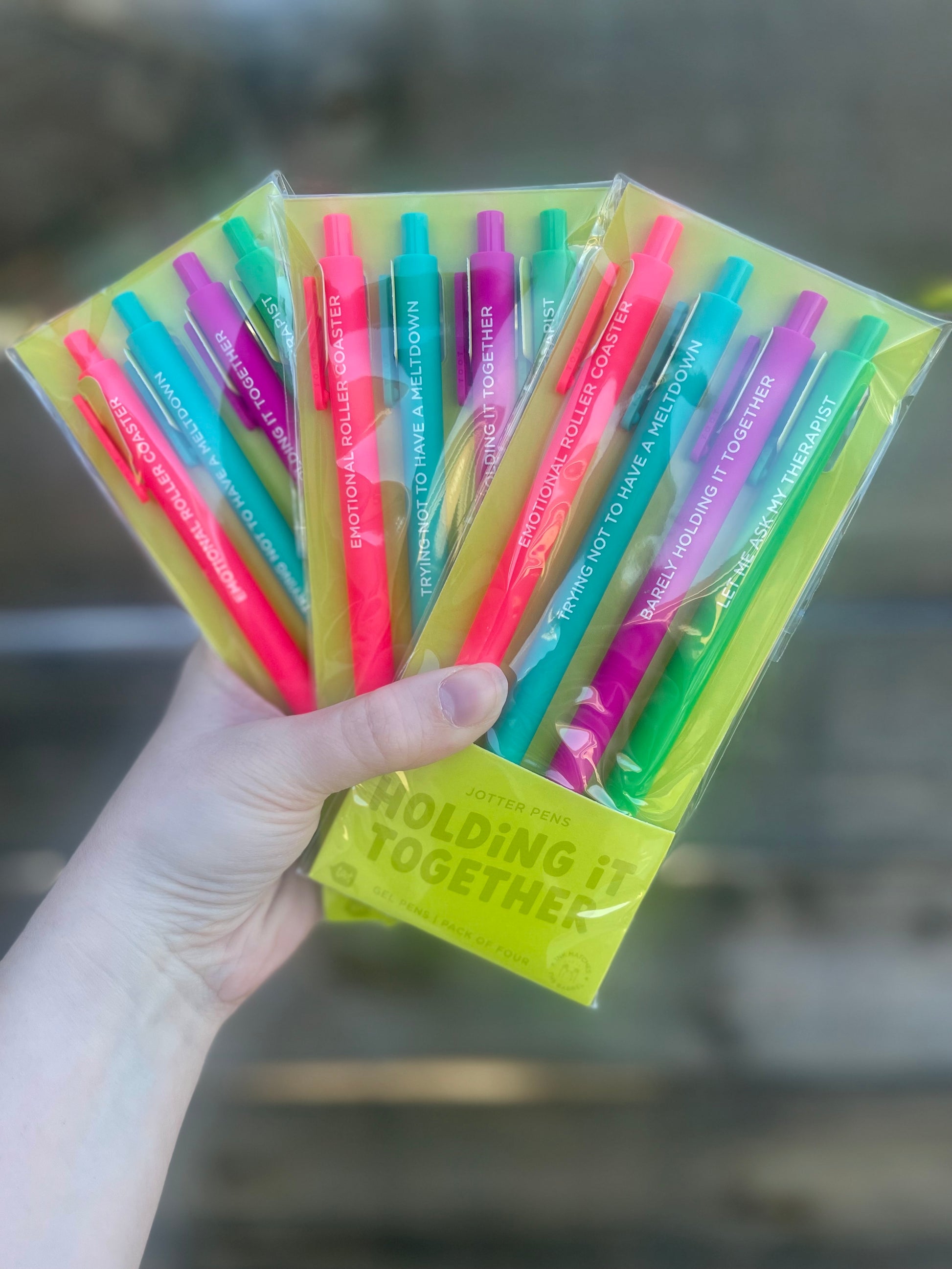 Our 4 packs of Jotter Pen Sets are all themed sets. Super fun sayings and the perfect color mixes. The soft-touch barrel surface and fine-point gel ink that matches the barrel will make these pens your new favorite. Did we mention these pens are TIKTOK famous?! Yep, that's WRITE! (please note the navy, grey, white, and metallic pens write in black ink)