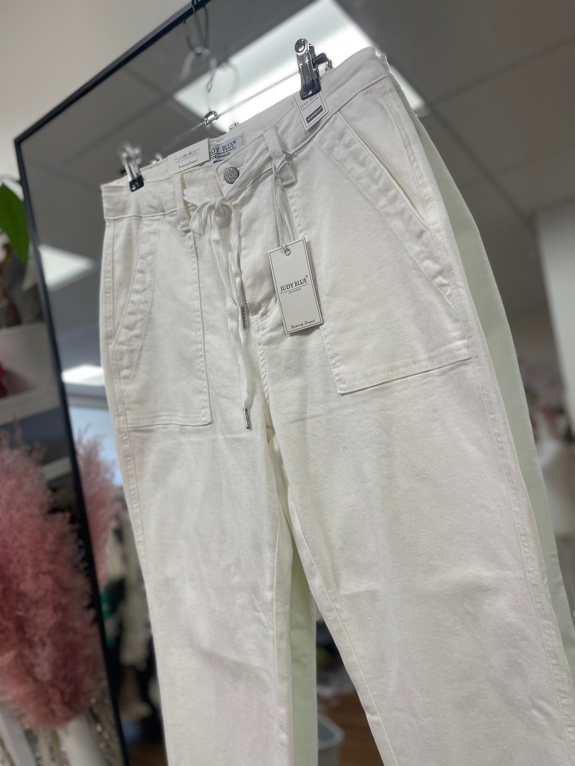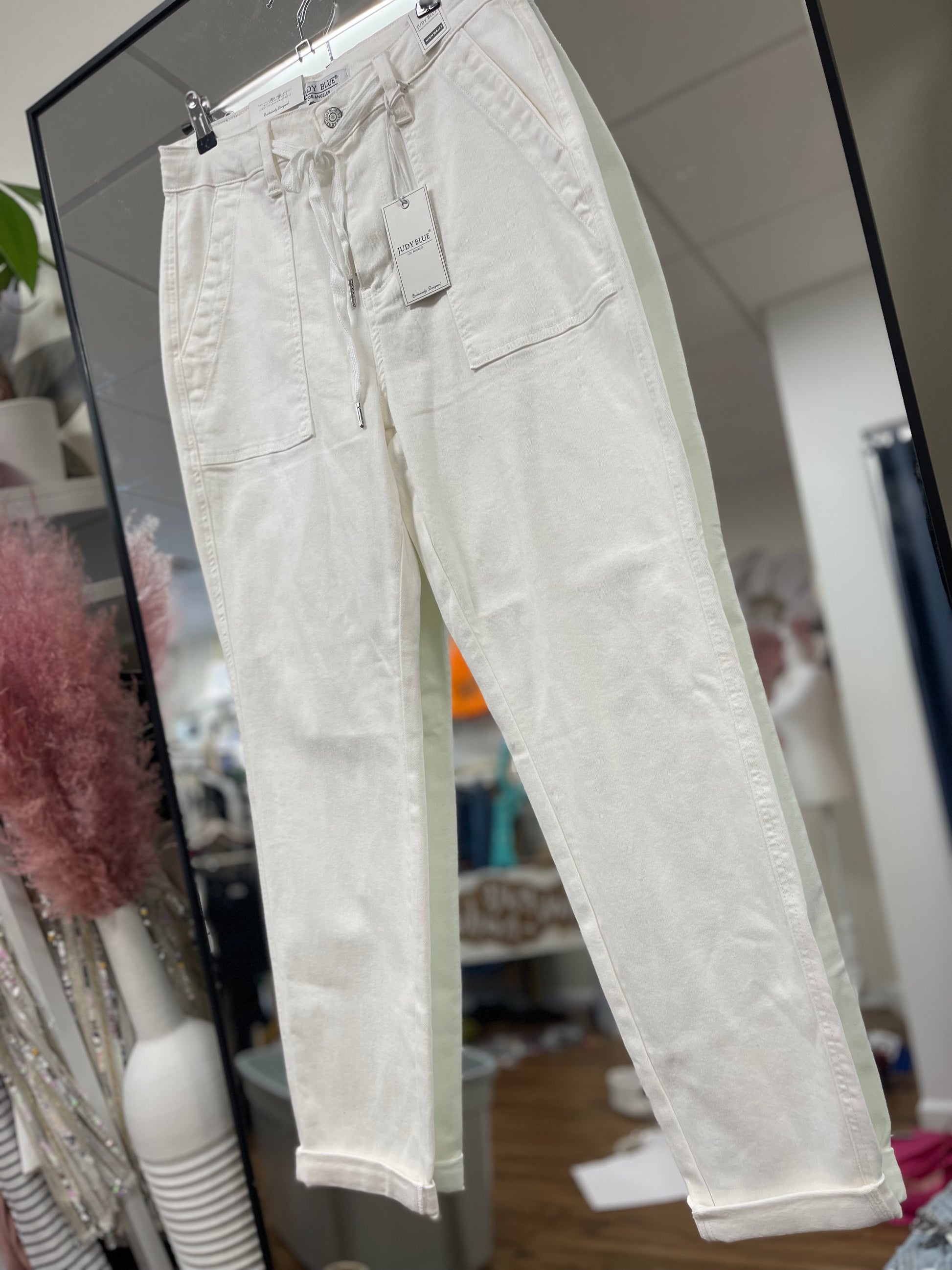 Judy Blue White Cuffed Jogger