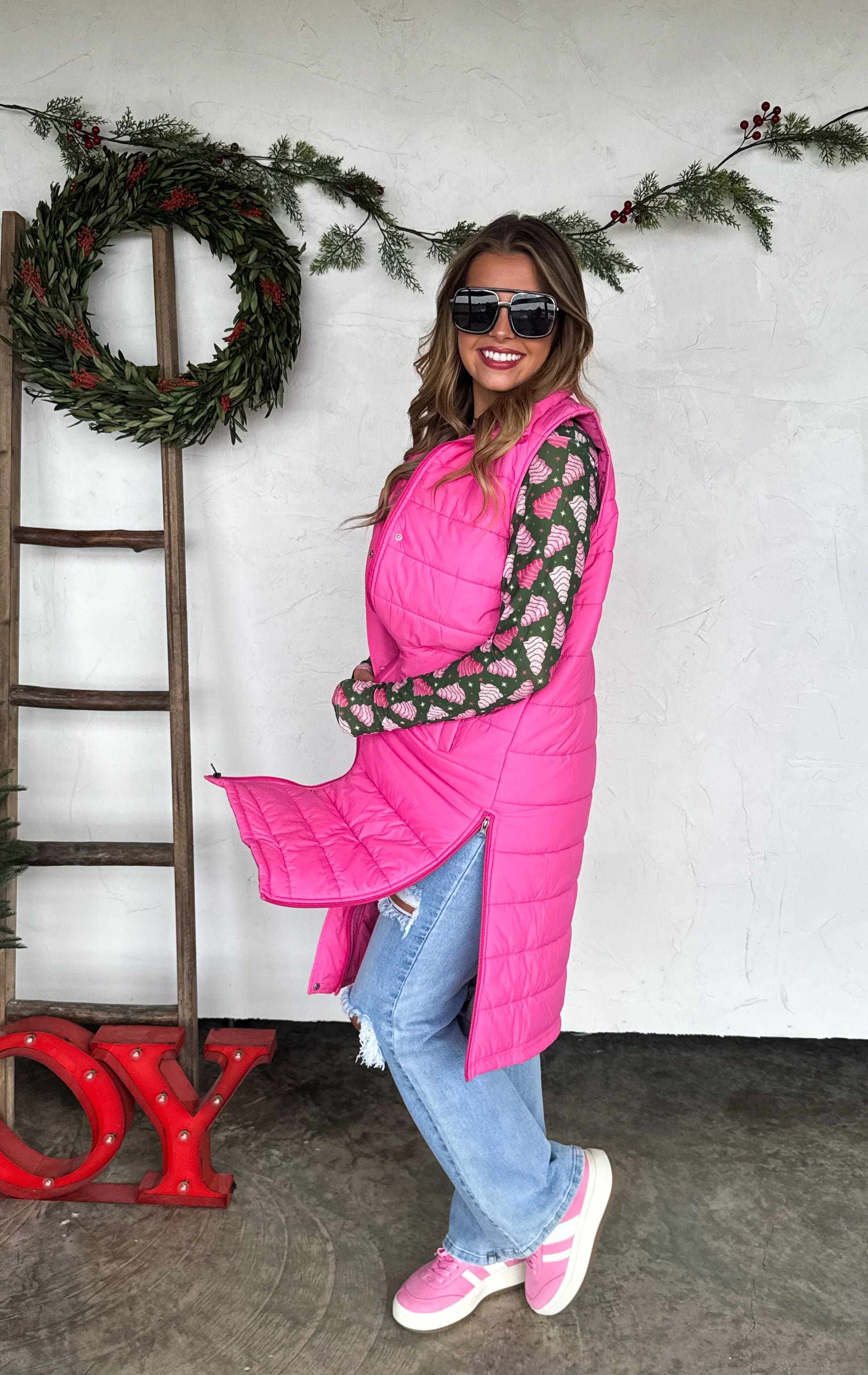 Kendall Long Puffer Vest in Pink [[PRE-ORDER]]