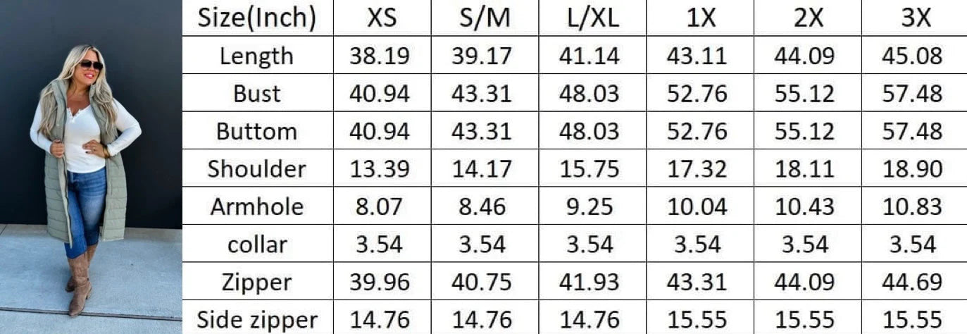 Stay warm and stylish this winter with the CUTEST LONG PUFFER VEST. Features snap buttons, ZIPPER and side pockets. Even the sides have a working zipper detail! It’s high-quality material is perfectly designed.