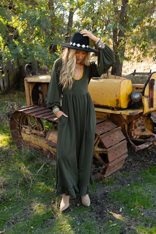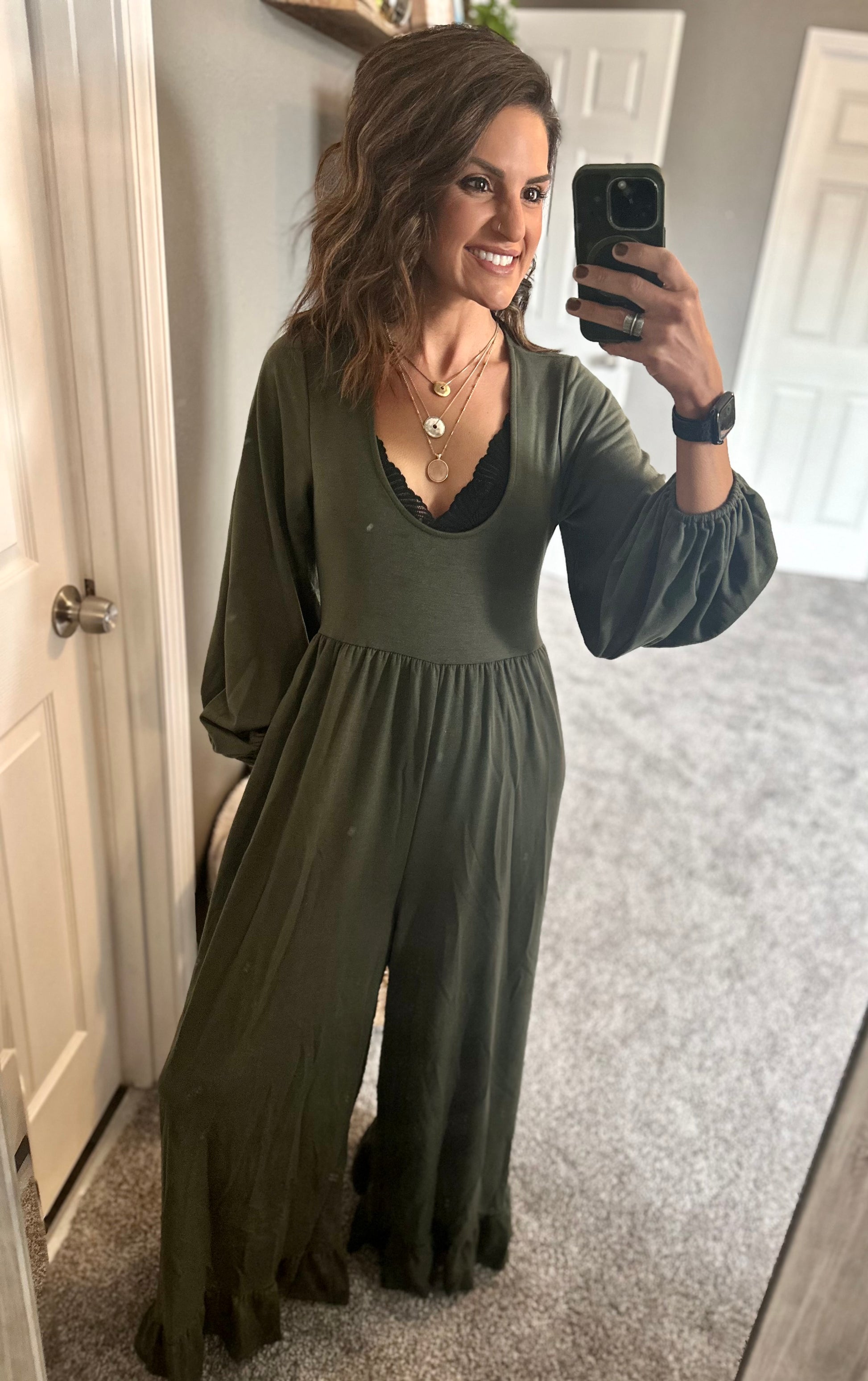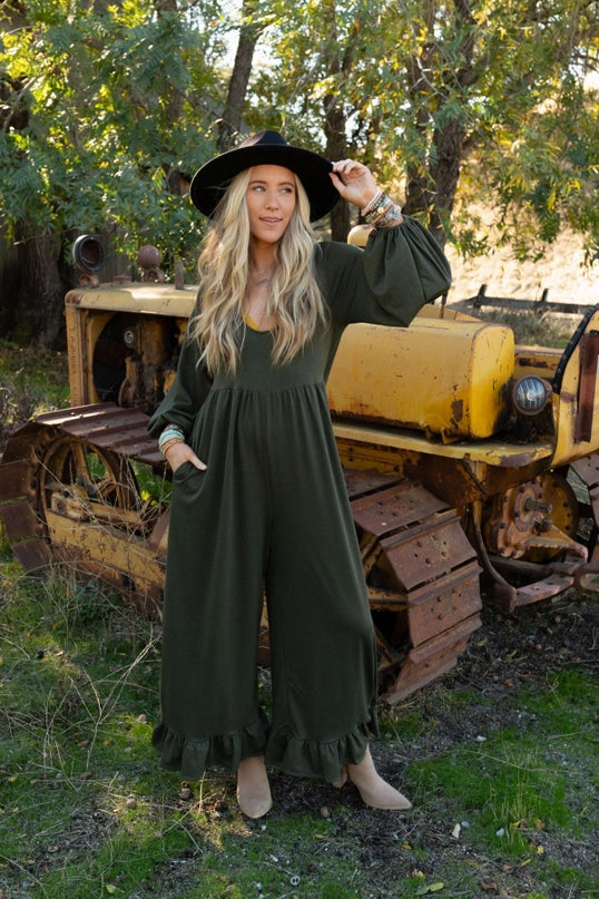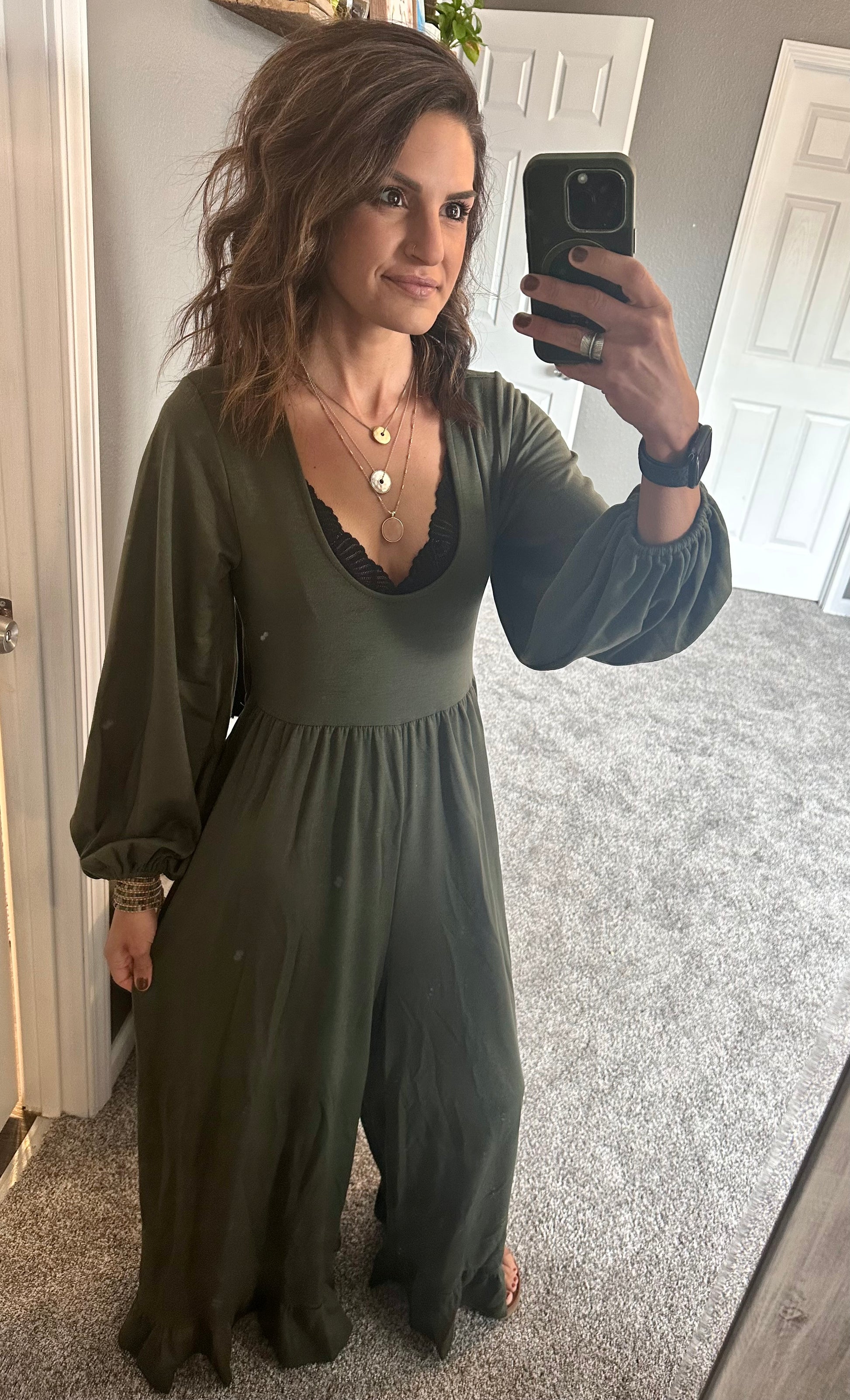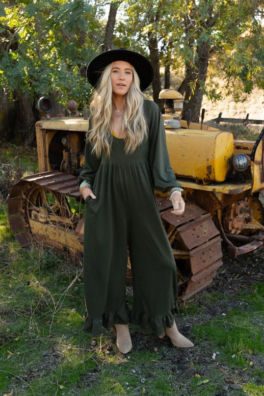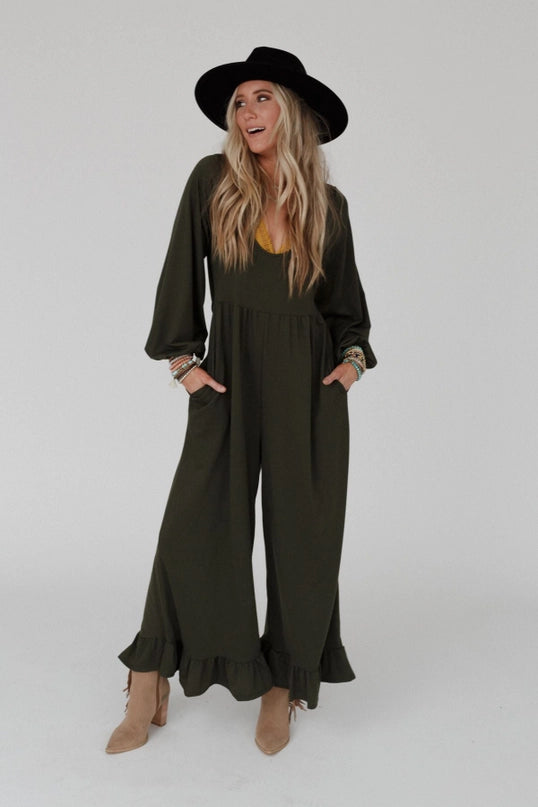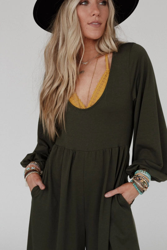 A new wardrobe essential, the Best Intentions Long Sleeve Jumpsuit will have you leaning for more looks to style it with! You will love this unique jumpsuit with all of your soul because it features: