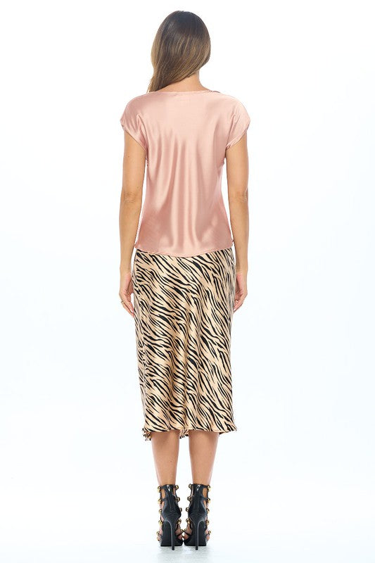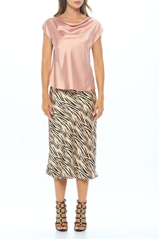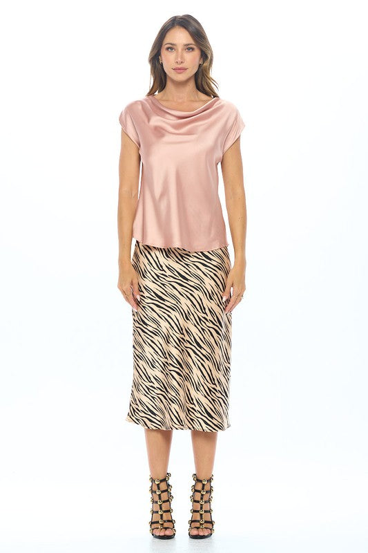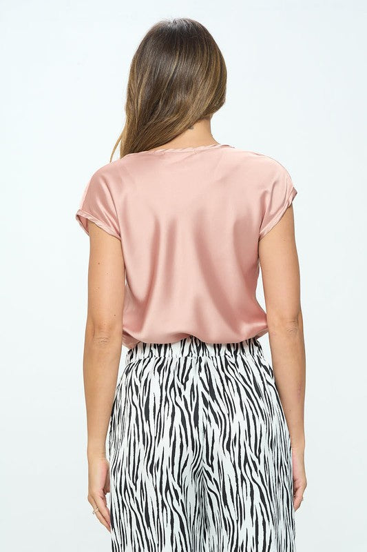 Made in USA Solid Satin Top with Cowl Neck. Fabric content: 97% Polyester, 3% Spandex. Available in other Colors.