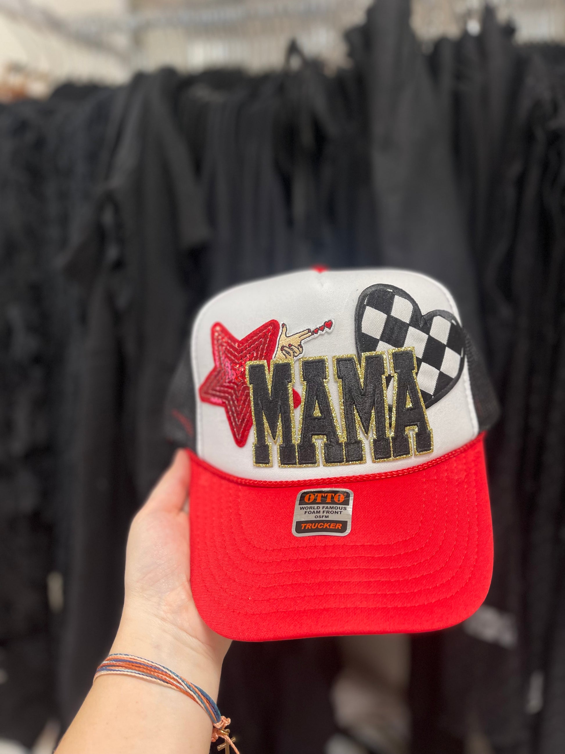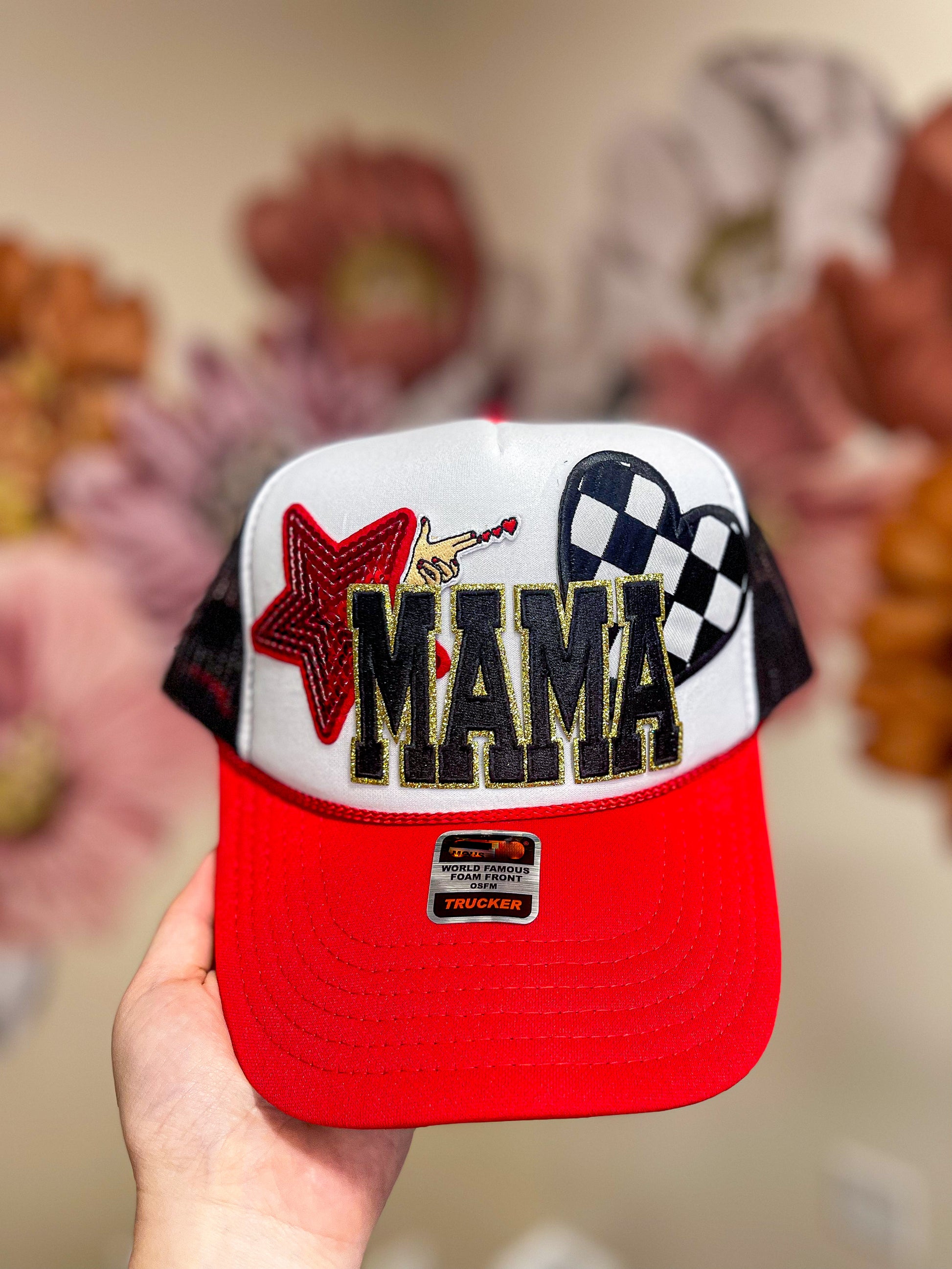 Spice up your hat game with the Mama Hat! This red, white, and black trucker hat features eye-catching red, gold, and black accents. Show off your playful side with this stylish and quirky accessory. (Warning: may cause hat envy in others!) ๐งข๐