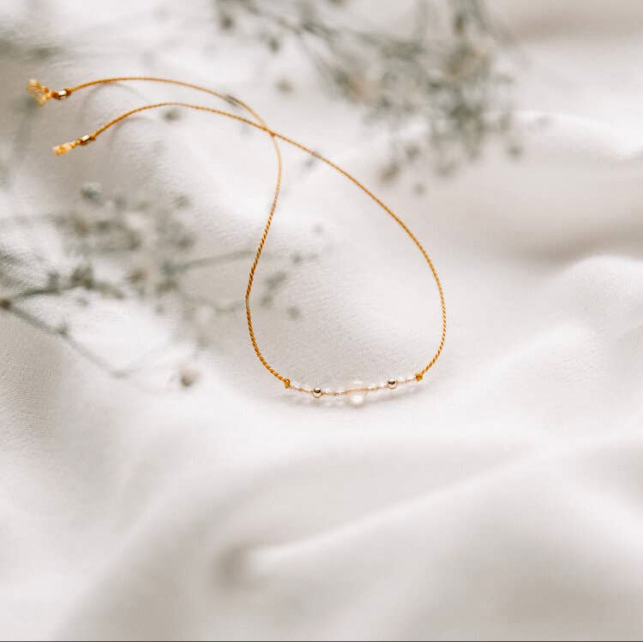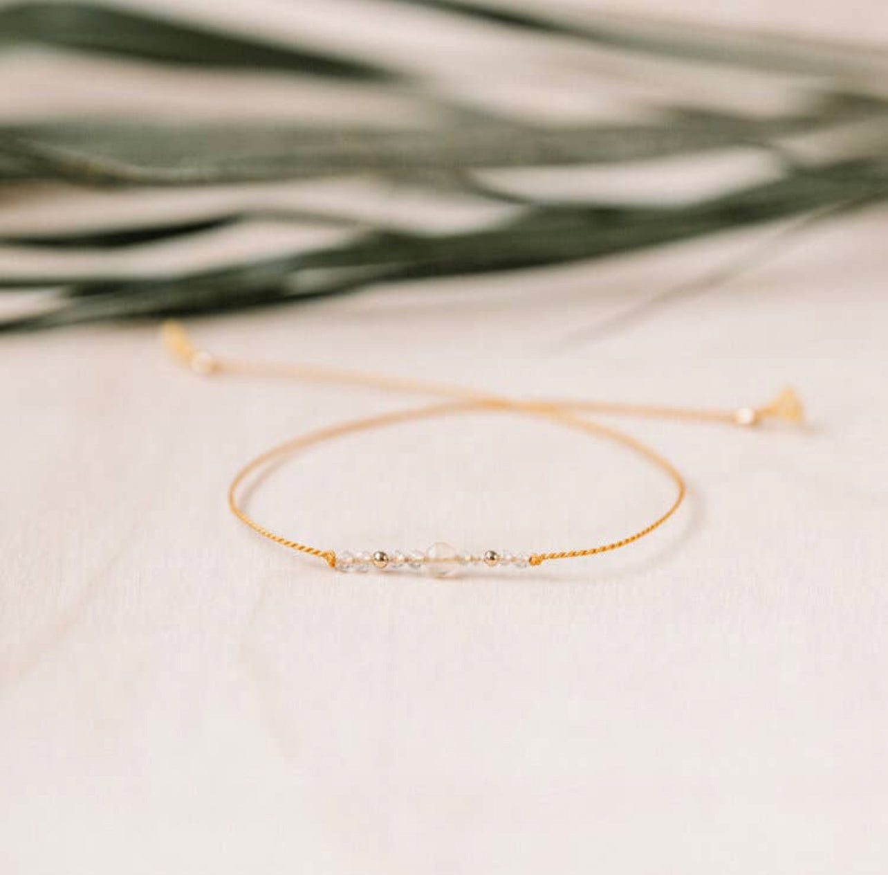 Beautiful, dainty and minimalistic string bracelet made from 100% silk string and natural clear quartz and citrine crystal.