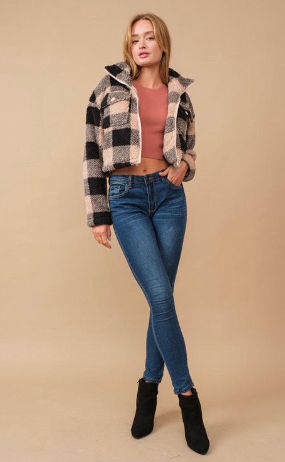 This Mauve Flannel Sherpa Zip Up Jacket is the cozy-cute combo you didn't know you needed! It's got all the warmth and snugness you want, with its sherpa-lined interior and long sleeves, plus it's cropped length and flap pockets give it an extra something-something. Get zipped up in style!