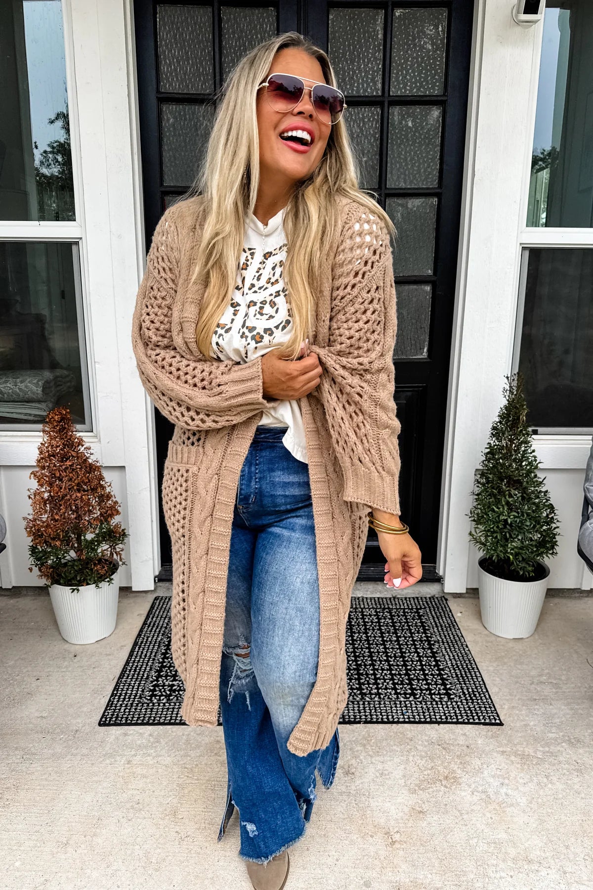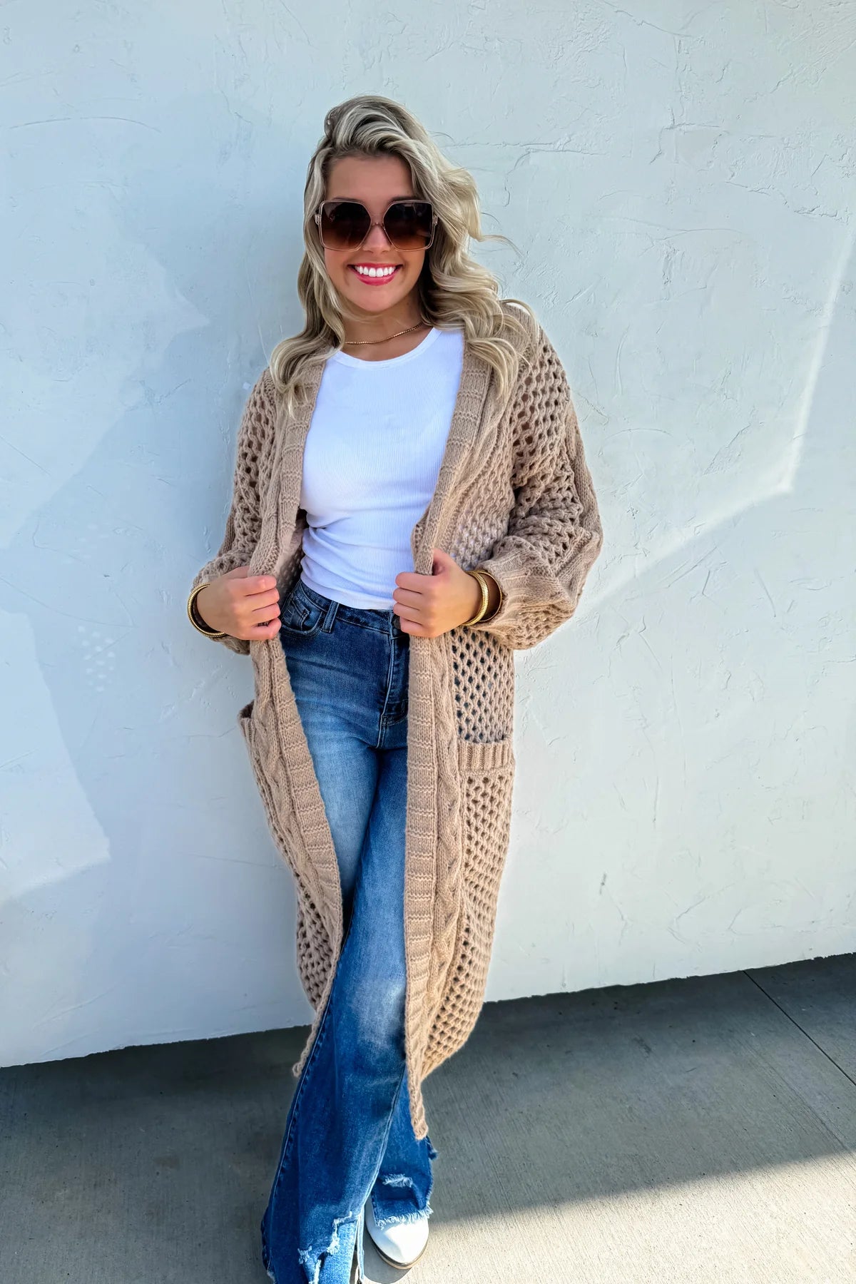 Wow, these cardigans are a total stunner! You will get compliments where-ever you go! This sweater knit fabric cardi features side pockets and is perfectly paired with jeans or shorts and a tank!