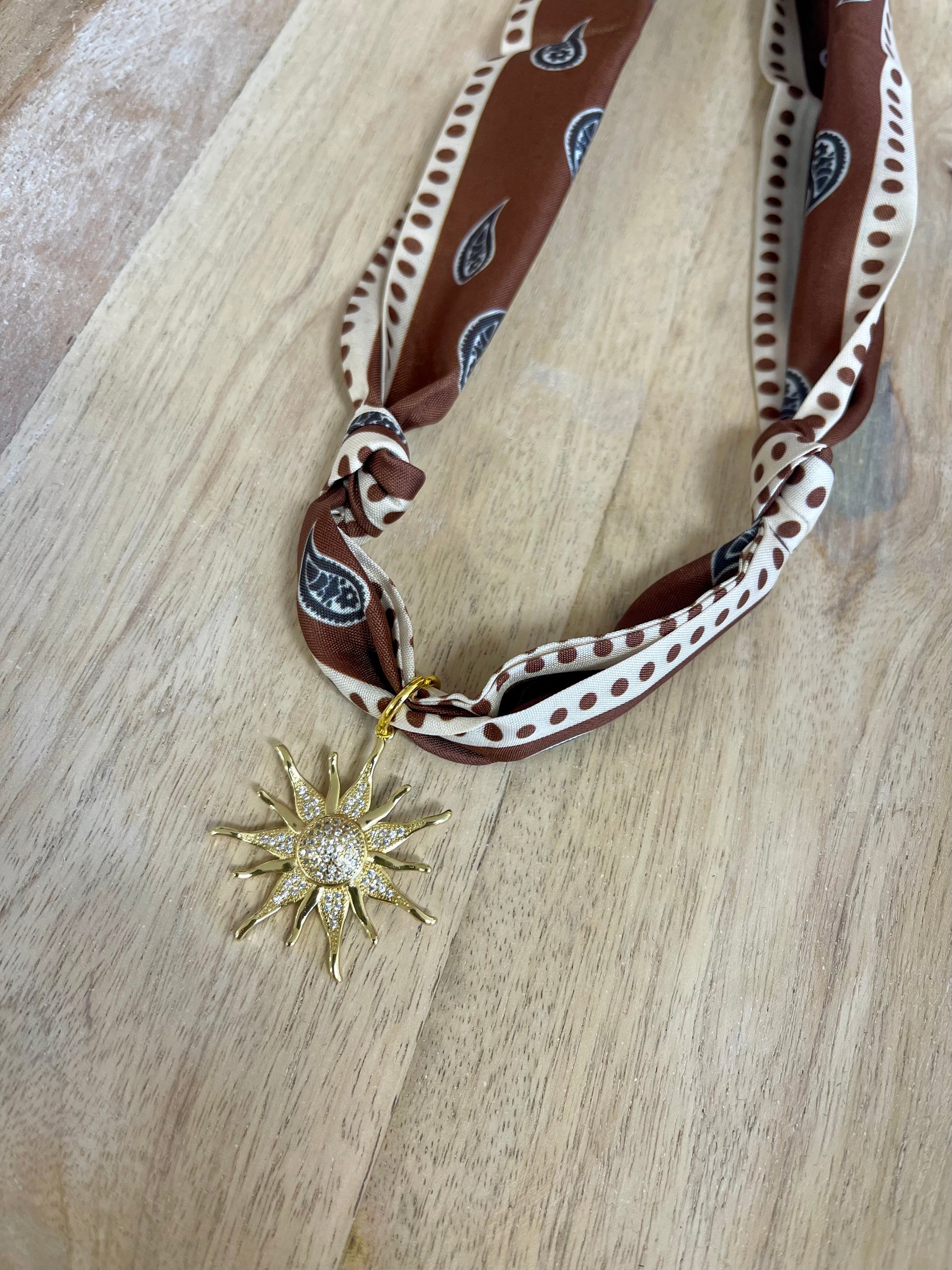 Add a fun and cute touch to your outfit with our Mocha Paisley Trendy Scarf Necklace. This adjustable length necklace features a trendy charm that doubles as a locket to keep your secrets safe. Perfect for any fashion-forward individual looking to add a unique accessory to their collection.