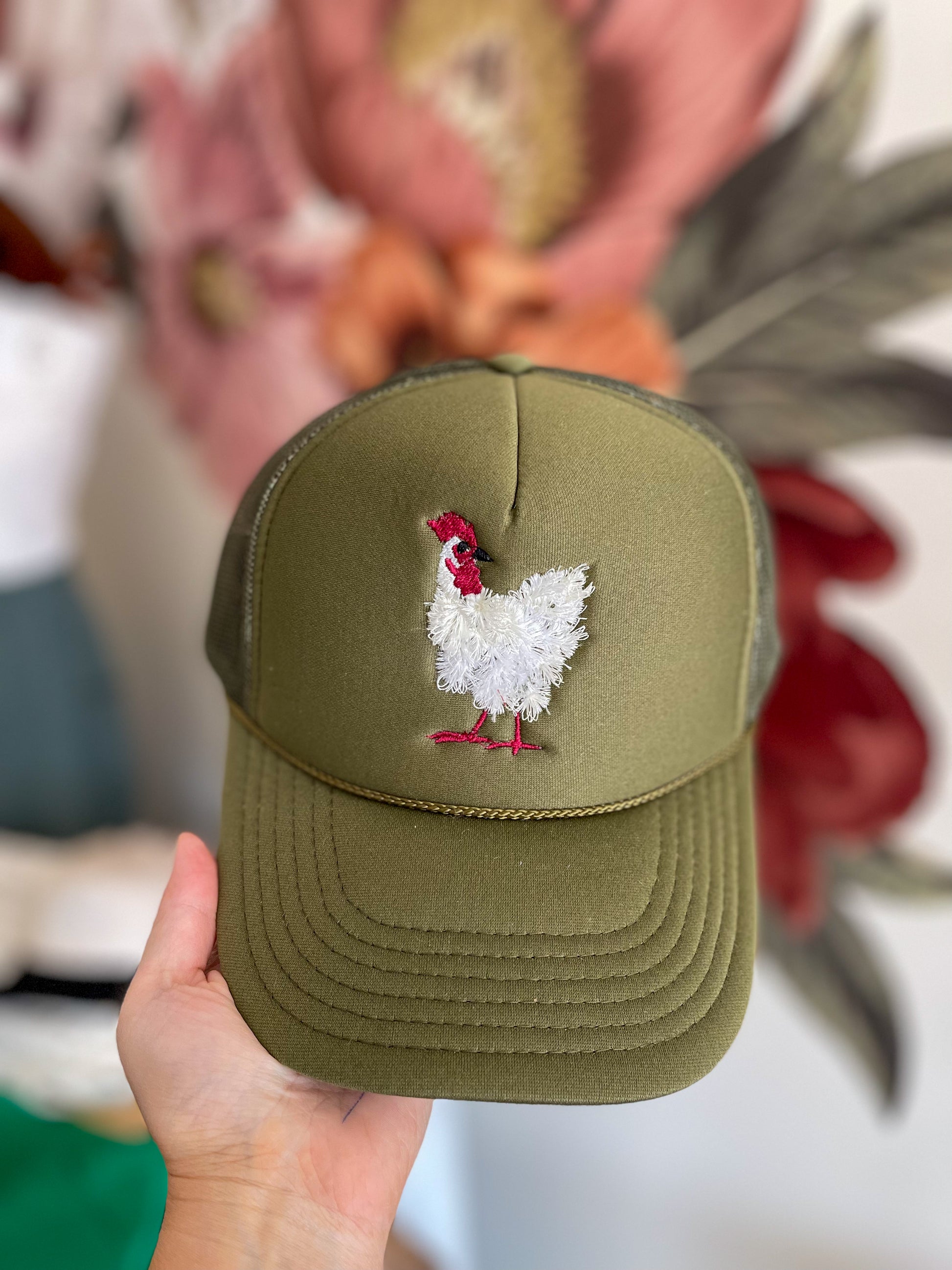 Get ready to elevate your accessory game with this whimsical embroidered cap! Perfectly capturing the charm of our feathered friends, the adorable chicken design will have you clucking with absolute joy. Made for bird lovers and fashionistas alike, this hat is not just an accessory—it's a statement! Whether you're heading to the farm, a casual outing, or just adding some fun to your everyday wear, this stylish piece promises to turn heads. One size fits most.