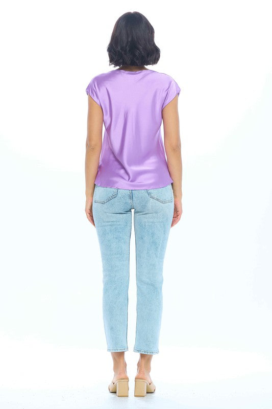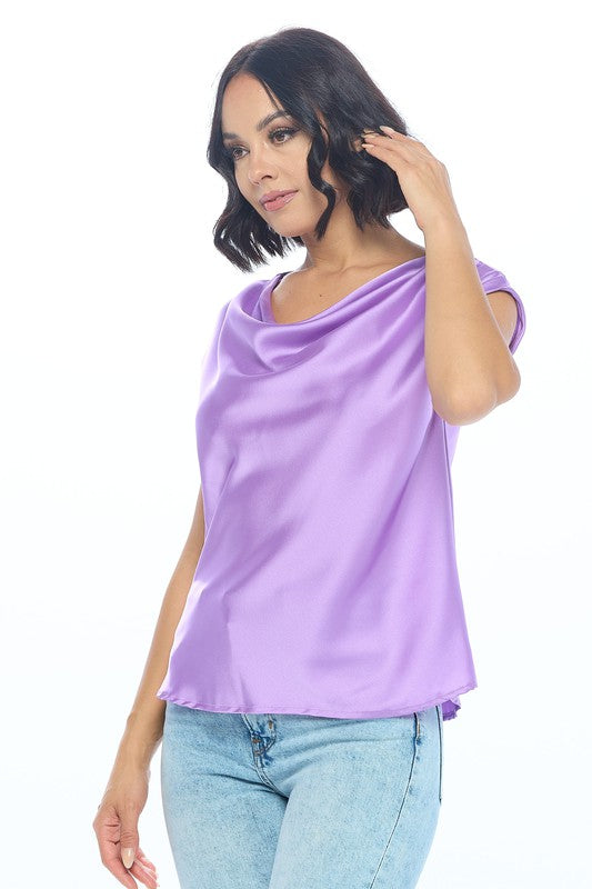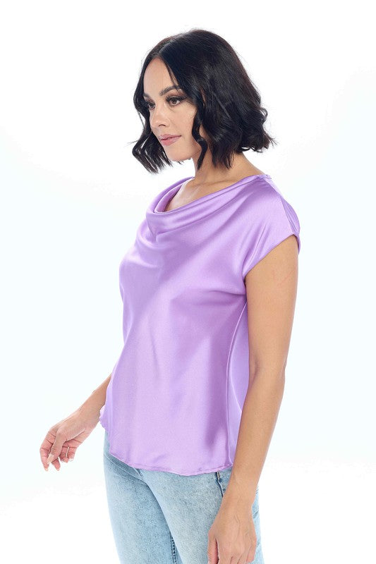 Made in USA Solid Satin Top with Cowl Neck. Fabric content: 97% Polyester, 3% Spandex. Available in other Colors.