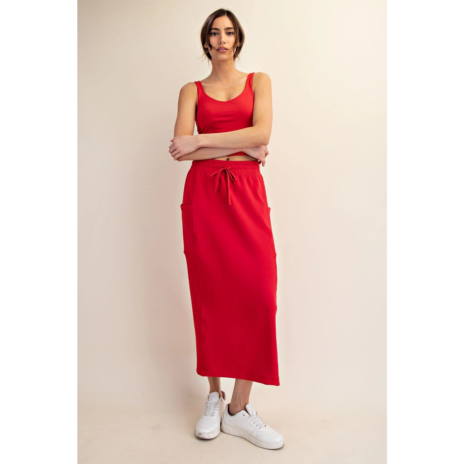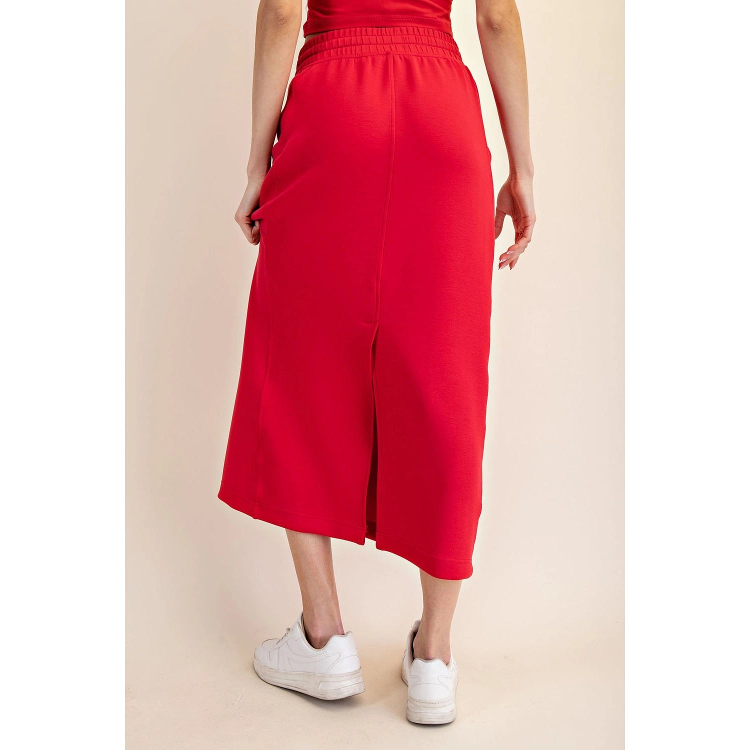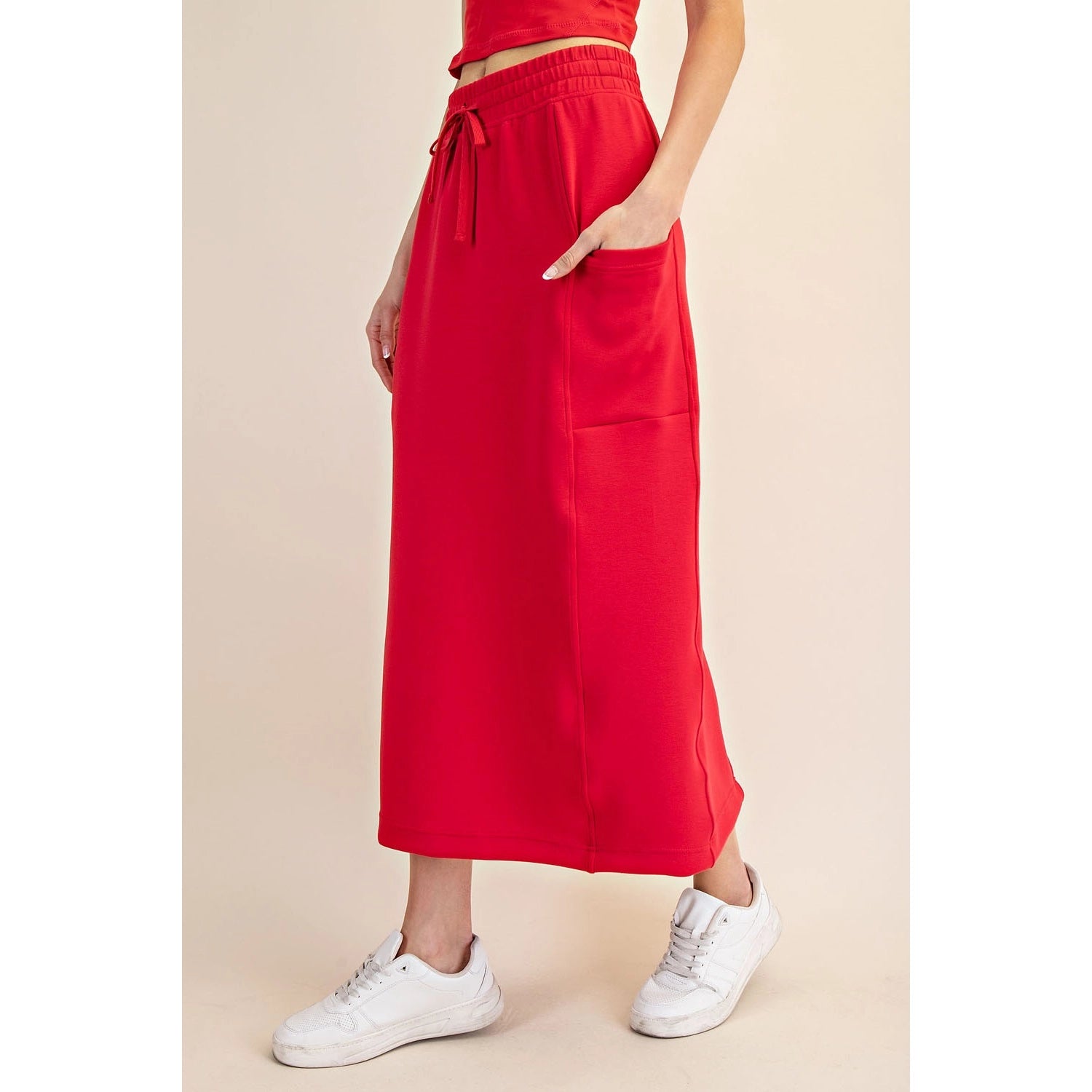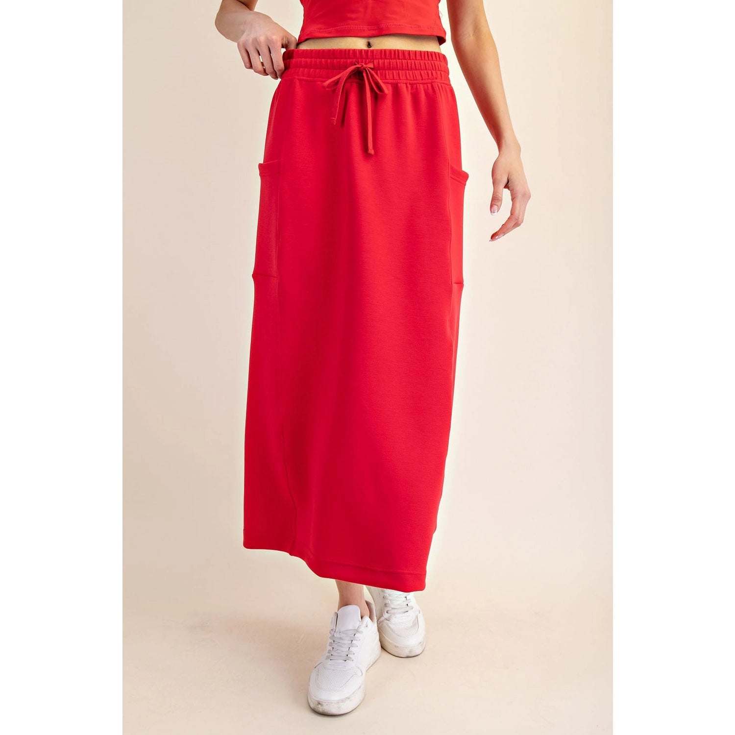 Modal scuba long skirt made from silky smooth, lightweight cooling fabric. Designed with a flowy silhouette and side pockets for effortless style and comfort.